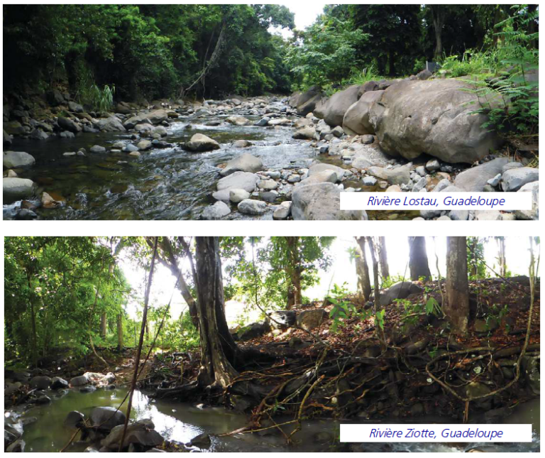 Source : Gayot, M., Procopio, L., Conjard S., Boulange E., Bernus J. (2018). Étude de la typologie des ripisylves de Guadeloupe et proposition d'espèces utilisables en génie végétal sur les berges ; Volume i : rapport d’étude. Office national des Forêts. Basse-Terre, Guadeloupe. 106p.
