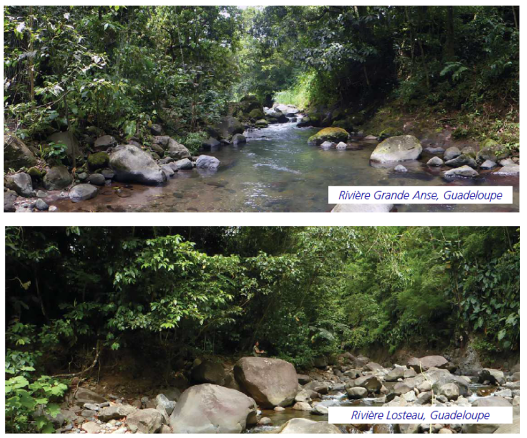 Source : Gayot, M., Procopio, L., Conjard S., Boulange E., Bernus J. (2018). Étude de la typologie des ripisylves de Guadeloupe et proposition d'espèces utilisables en génie végétal sur les berges ; Volume i : rapport d’étude. Office national des Forêts. Basse-Terre, Guadeloupe. 106p.