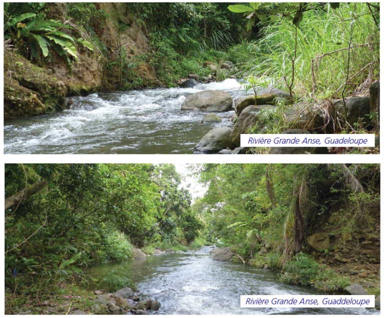 Fuente: Gayot, M., Procopio, L., Conjard S., Boulange E., Bernus J. (2018). Estudio de la tipología de los rizos de Guadalupe y propuesta de especies utilizables en ingeniería vegetal en las riberas; volumen i: informe de estudio. Oficina Nacional de Bosques. Basse-Terre, Guadalupe. 106p.