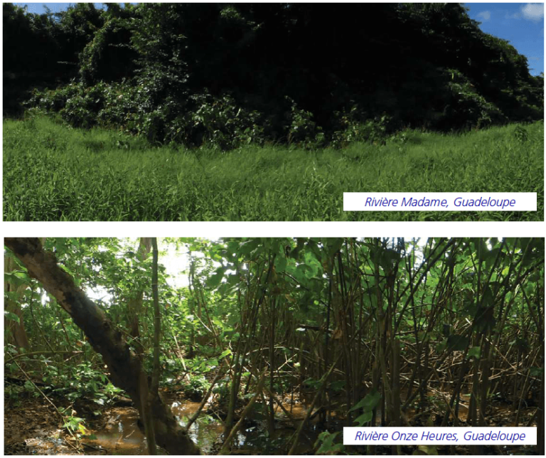Fuente: Gayot, M., Procopio, L., Conjard S., Boulange E., Bernus J. (2018). Estudio de la tipología de los rizos de Guadalupe y propuesta de especies utilizables en ingeniería vegetal en las riberas; volumen i: informe de estudio. Oficina Nacional de Bosques. Basse-Terre, Guadalupe. 106p.