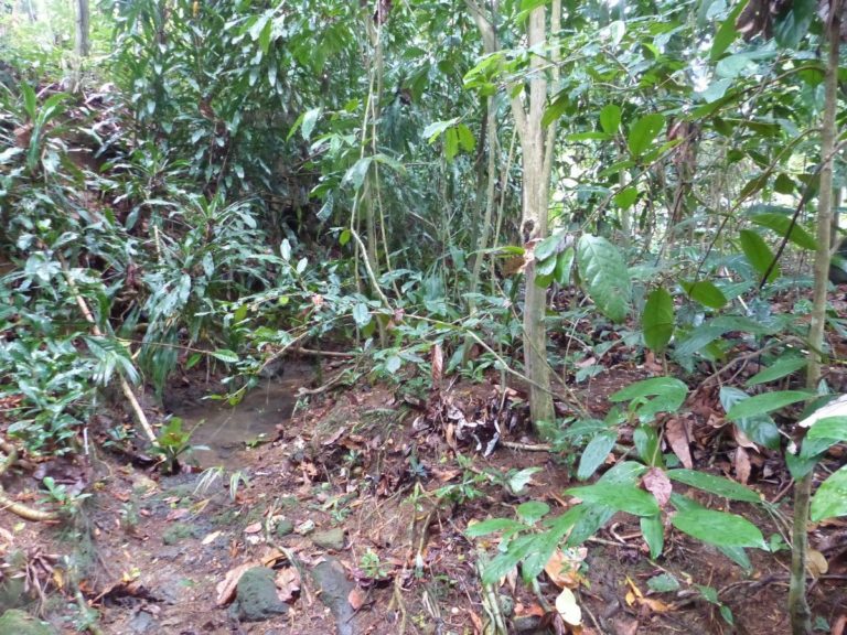El curso de agua tiene una pendiente media, una granulometría de sedimentos finos y gruesos (a veces hay lava). El agua es dulce, generalmente poco cargada. El río es angosto, el dosel forestal continúa y el entorno es totalmente boscoso. Las riberas ya no están bien definidas y se funden con las laderas del río, con pendientes bastante pronunciadas (curso de agua encajado).